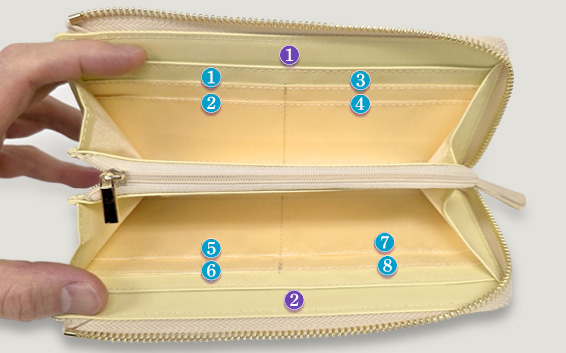 数字は人生は左右するほどのチカラがあります。なかでも最高の幸運を呼ぶのは数字の8。末広がりの「八」は、発展エネルギーが秘められており、横にすると、∞(無限大)をあらわします。そこで、紫音先生の財運財布にはカード入れを8つ用意しました。