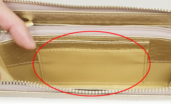 - ファスナー付きで、お札だけでなく小銭も入る